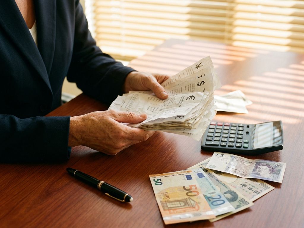 De valutaomrekening gebeurt meestal op het moment van betaling tegen de dan geldende wisselkoers. Sommige bureaus rekenen alles om naar euro’s voor de rapportage, terwijl andere de oorspronkelijke valuta aanhouden tot het einde van het proces.